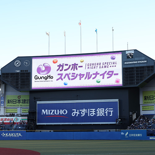 千葉県にホームグラウンドを置く千葉ロッテマリーンズの協賛を通じて、千葉県の盛り上がりに貢献したいと考え、グラウンド内のビジョン広告を掲載。